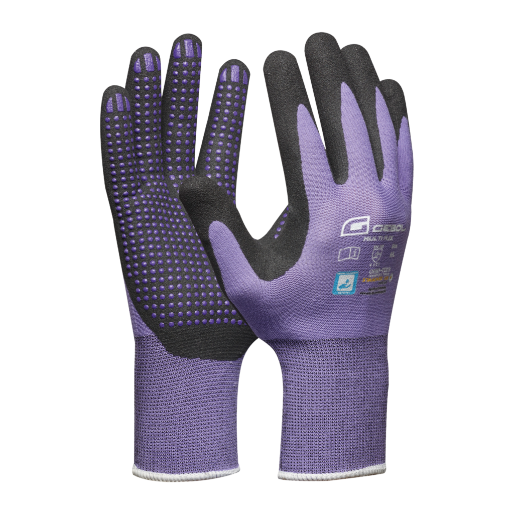 Frauenhände brauchen speziellen Schutz, wenn es um staubige und schmutzige Arbeiten geht. Robustheit, Tragekomfort und Atmungsaktivität machen den Gebol Multi Flex Lady zum Allrounder unter den Arbeitshandschuhen. Der nahtlose, dermatologisch getestete Montagehandschuh mit seiner Nitril-Mikroschaum-Beschichtung und den Nitril-Noppen auf der Handinnenfläche eignet sich hervorragend für Arbeiten, die Feingefühl verlangen wie z.B. Reparatur-, Montage-, Tischler- und Präzisionsarbeiten. Durch den besonders hohen Tragekomfort und die atmungsaktive Beschichtung schützt der Multi Flex Lady angenehm und leicht wie eine zweite Haut.