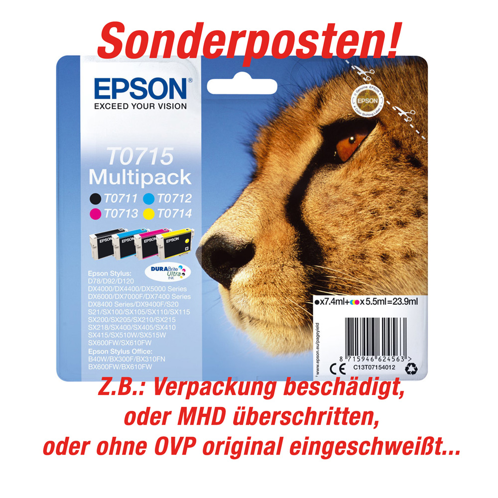 Sonderposten Epson C13T07154012 / T0715 Tinten Multipack (C,M,Y,K) 4 Stück