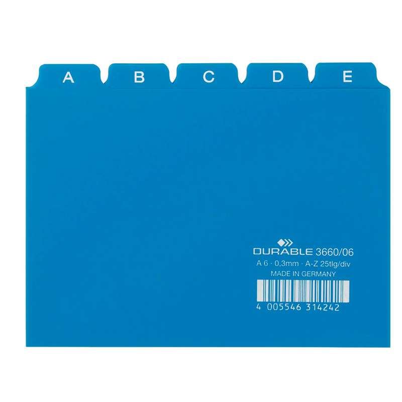 DURABLE Karteikartenregister A-Z – Übersichtliche Ordnung für Ihre Kartei Din A6 in blau, gelb, rot oder weiß