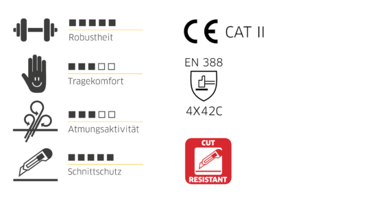 Mechanische Risiken gem. EN 388 Leistungsstufen