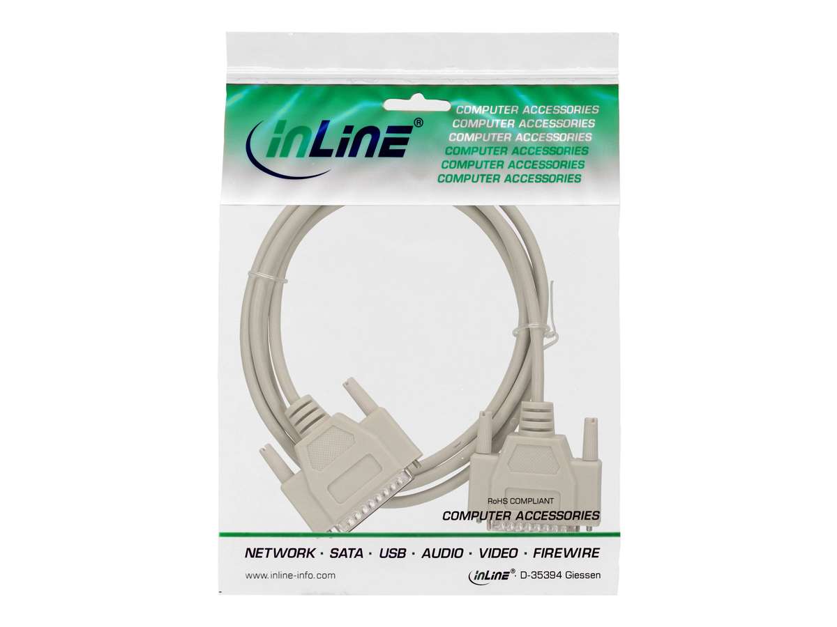 INLINE Datenkabel 25pol Sub D St/St 1:1 vergossen 2m - Ideal für RS232, RS422, RS485 Schnittstellen