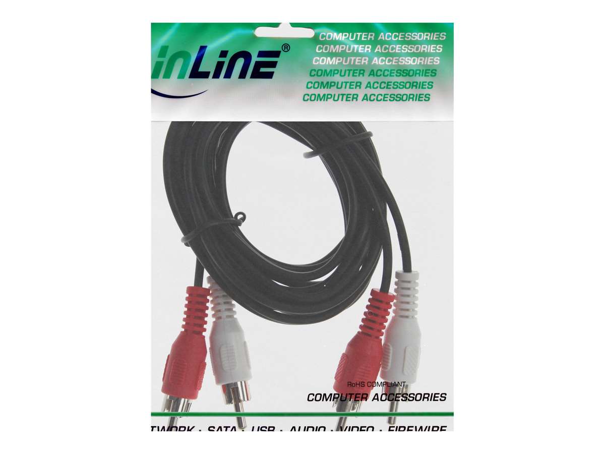 INLINE Cinch-Kabel – 2x Cinch-Stecker zu 2x Cinch-Stecker (5 m, Schwarz)