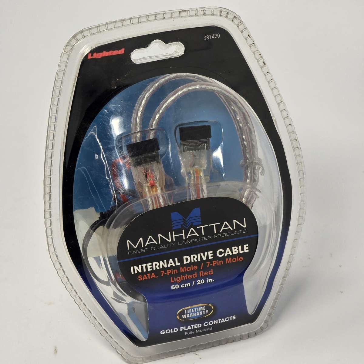 Das Manhattan SATA Kabel mit einer Länge von 50 cm verbindet zuverlässig interne Festplatten oder SSDs mit dem Mainboard. Mit 7-Pin Steckern an beiden Enden und einer auffälligen roten LED-Beleuchtung sorgt es nicht nur für eine stabile Datenübertragung, sondern auch für ein optisches Highlight im PC-Gehäuse.