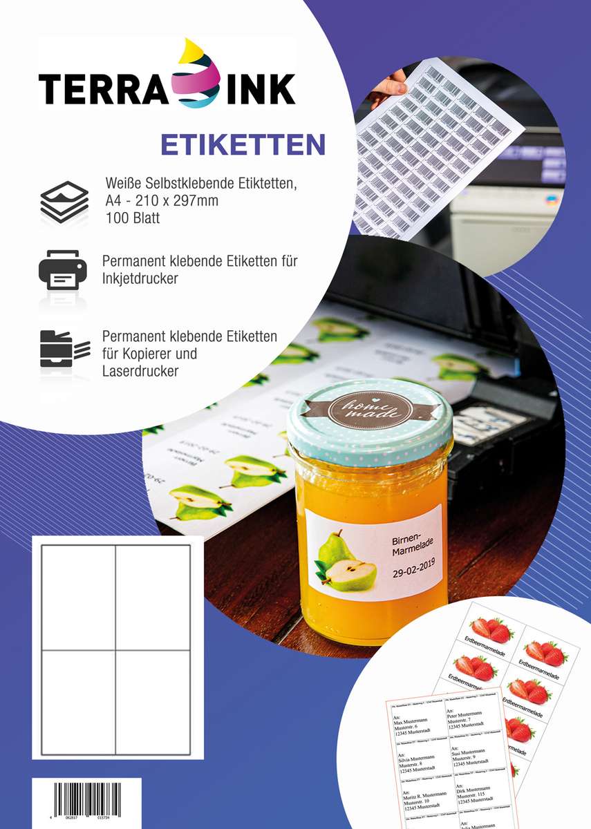Terra Ink Premium Etiketten Din A4 105 x 148 mm – 100 Blatt = 400 Etiketten